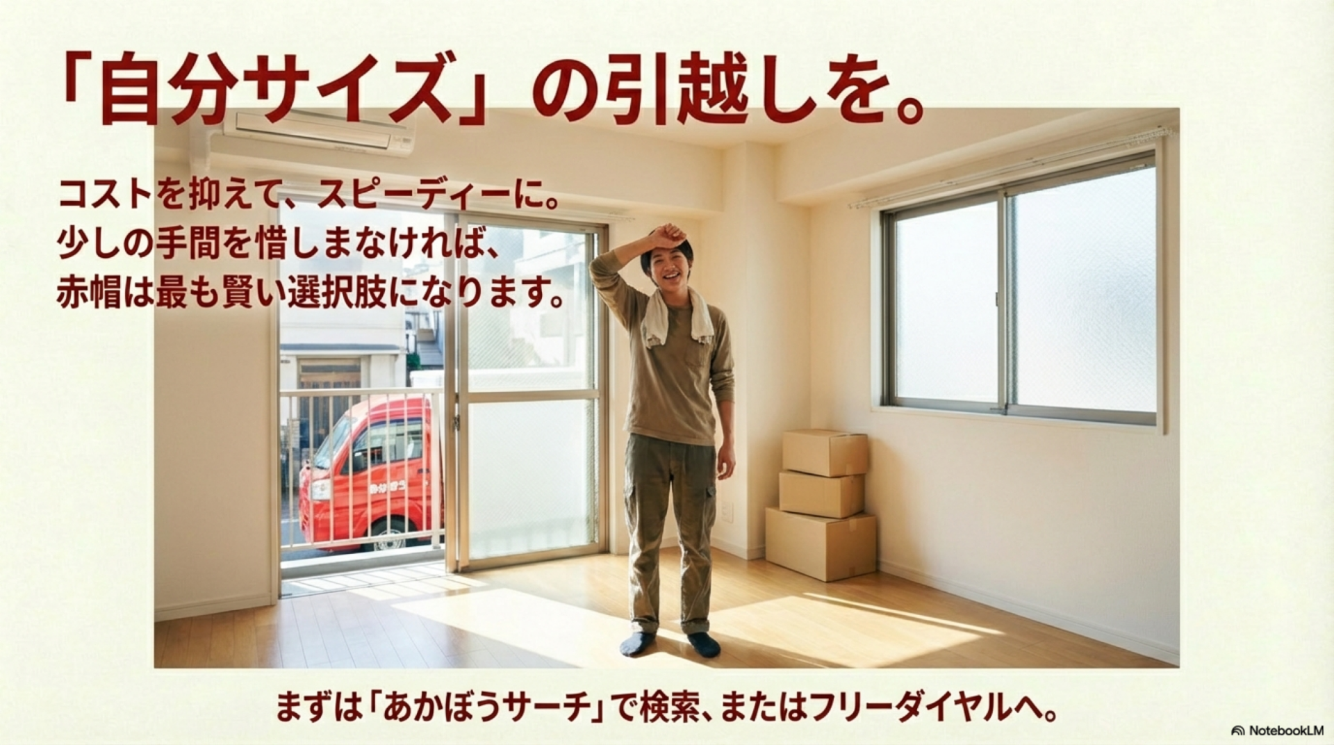 **判断の基本は「荷物が1台に収まるかどうか」**です。収まるなら赤帽のコストパフォーマンスは高く、収まらないなら引越し業者の単身プランや家族プランを検討したほうが合理的です。