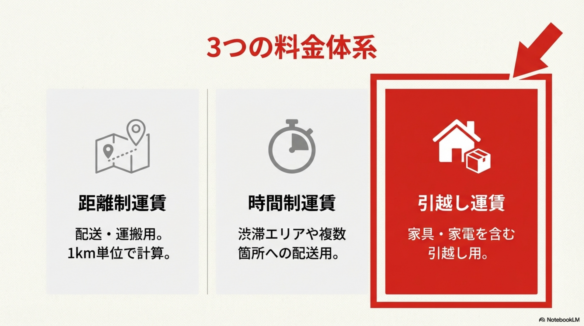 距離制・時間制・引越し運賃の3つの料金体系