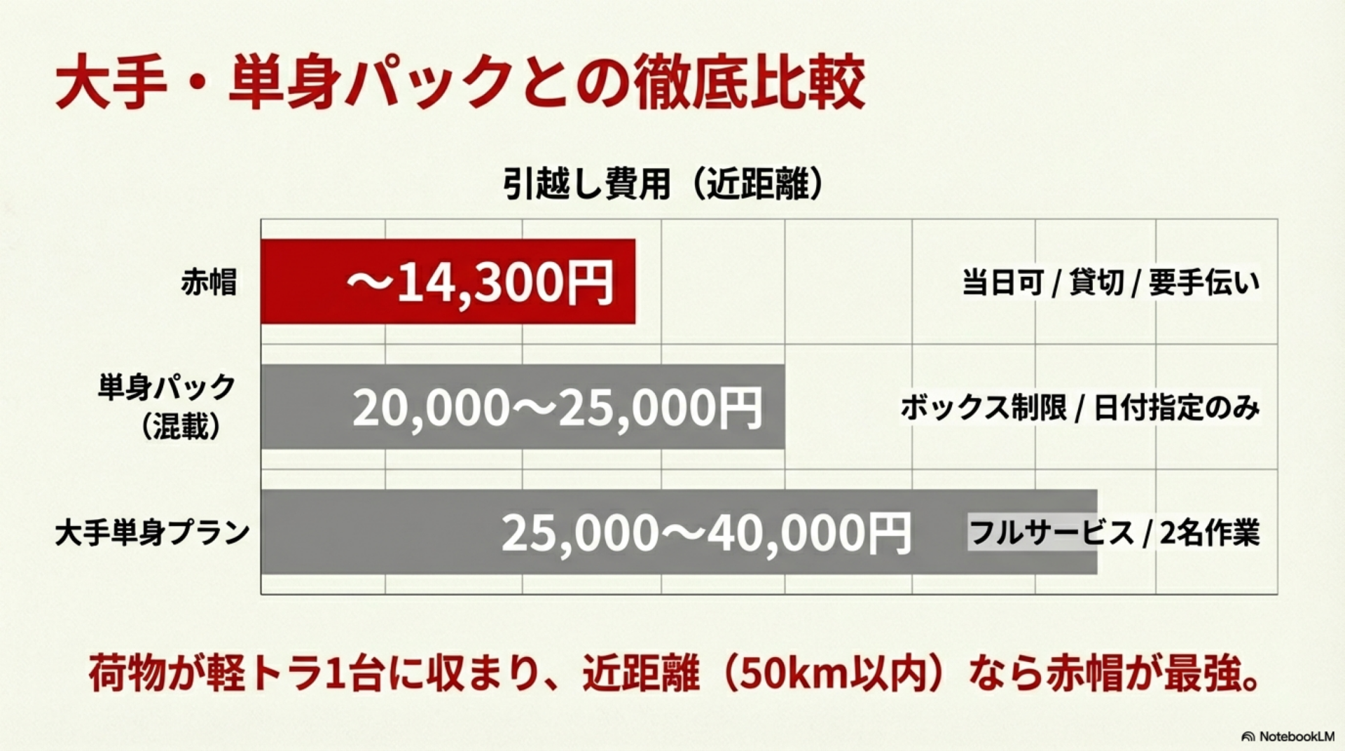 比較項目赤帽一般の引越し業者