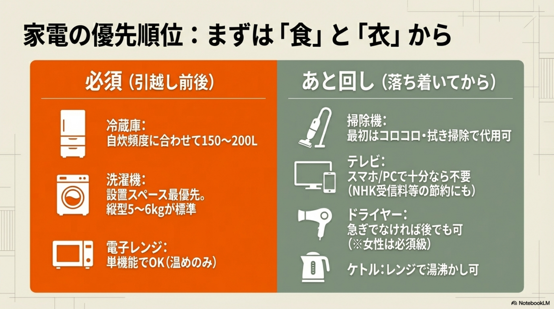 家電:必須とあと回しでいいものを分ける