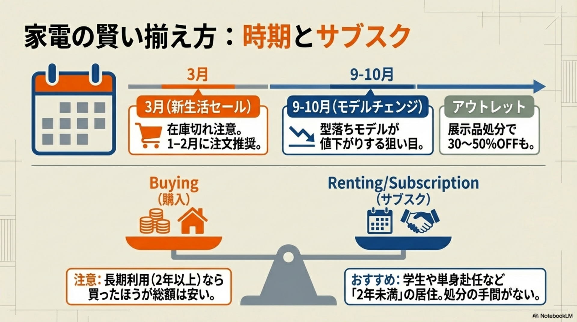 読み終えたとき、「何を」「いつ」「いくらで」揃えるかの全体像が明確になる。