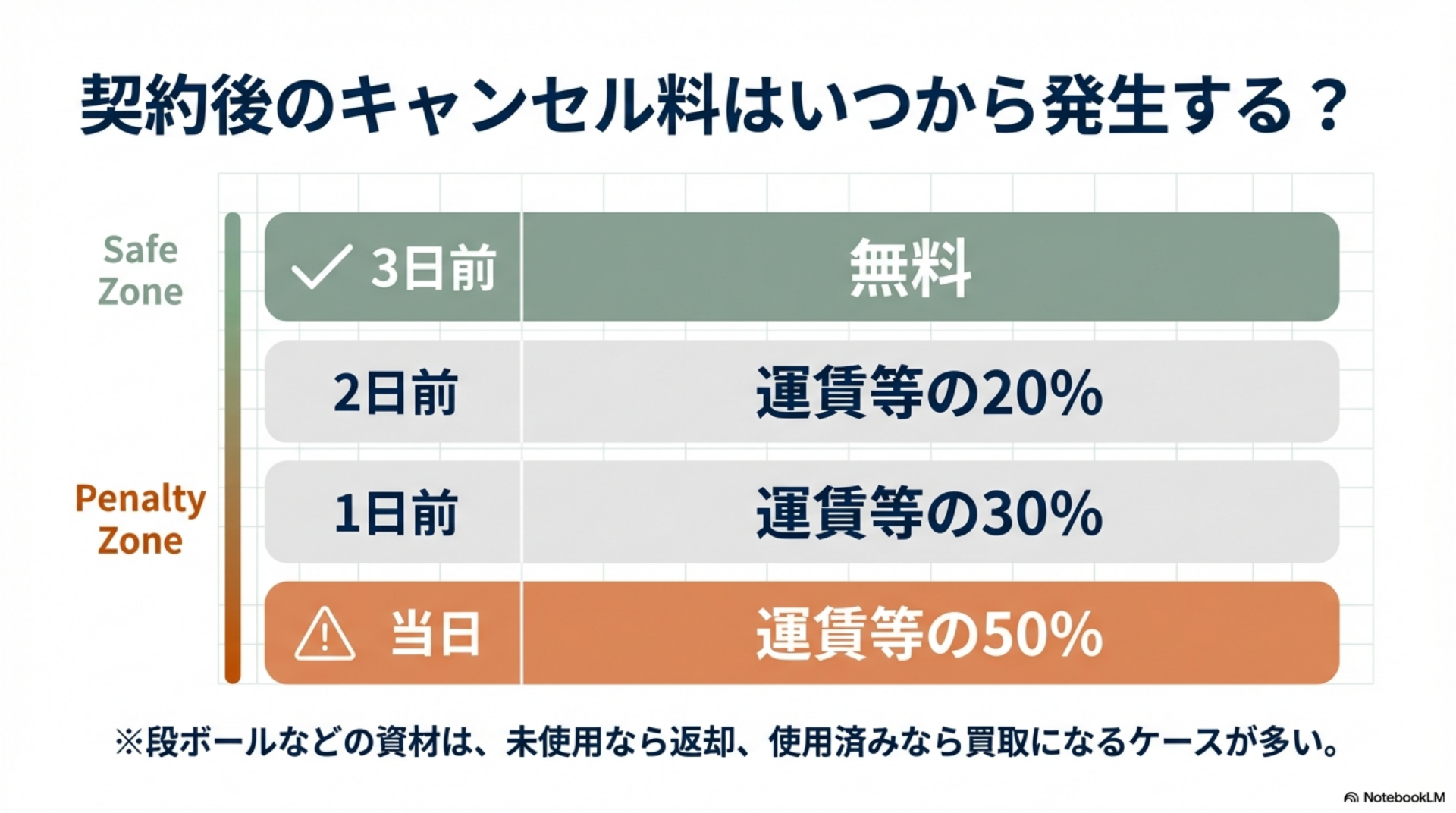- 📦 使用済みの資材:実費での買取を求められることがある