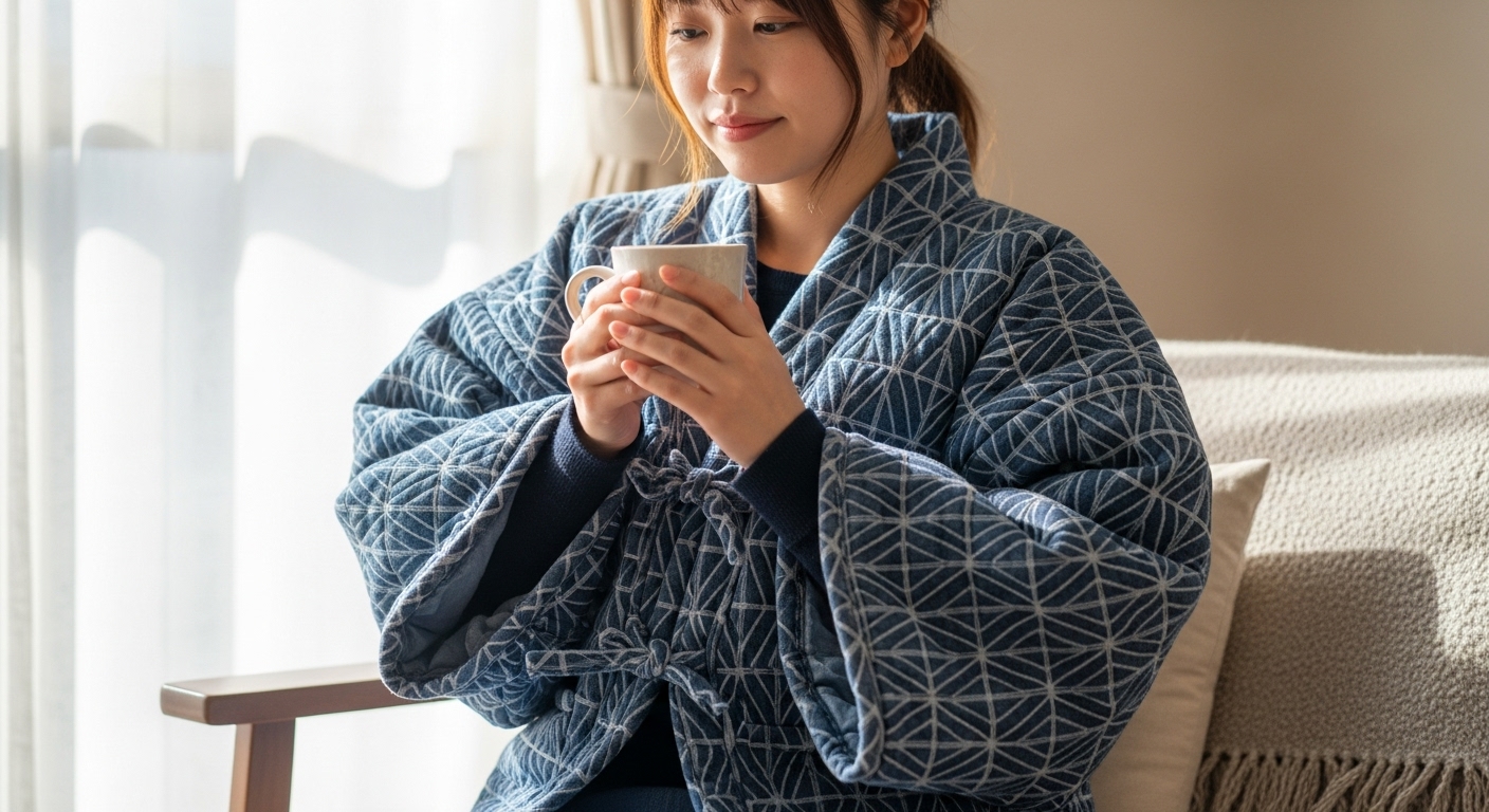 どてらはリラックス重視の人に最適です。丈が長いため下半身まで包み込まれる暖かさがあり、こたつや座椅子でゆっくり過ごす時間に向いています。