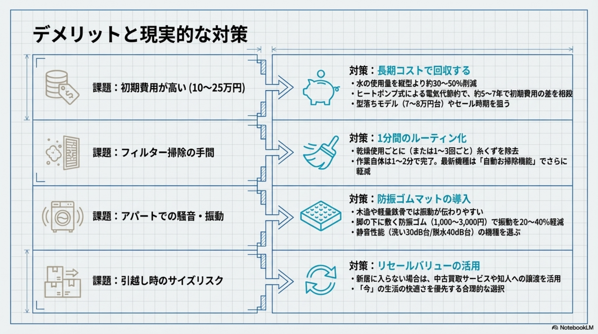 ドラム式洗濯乾燥機のデメリットと対策