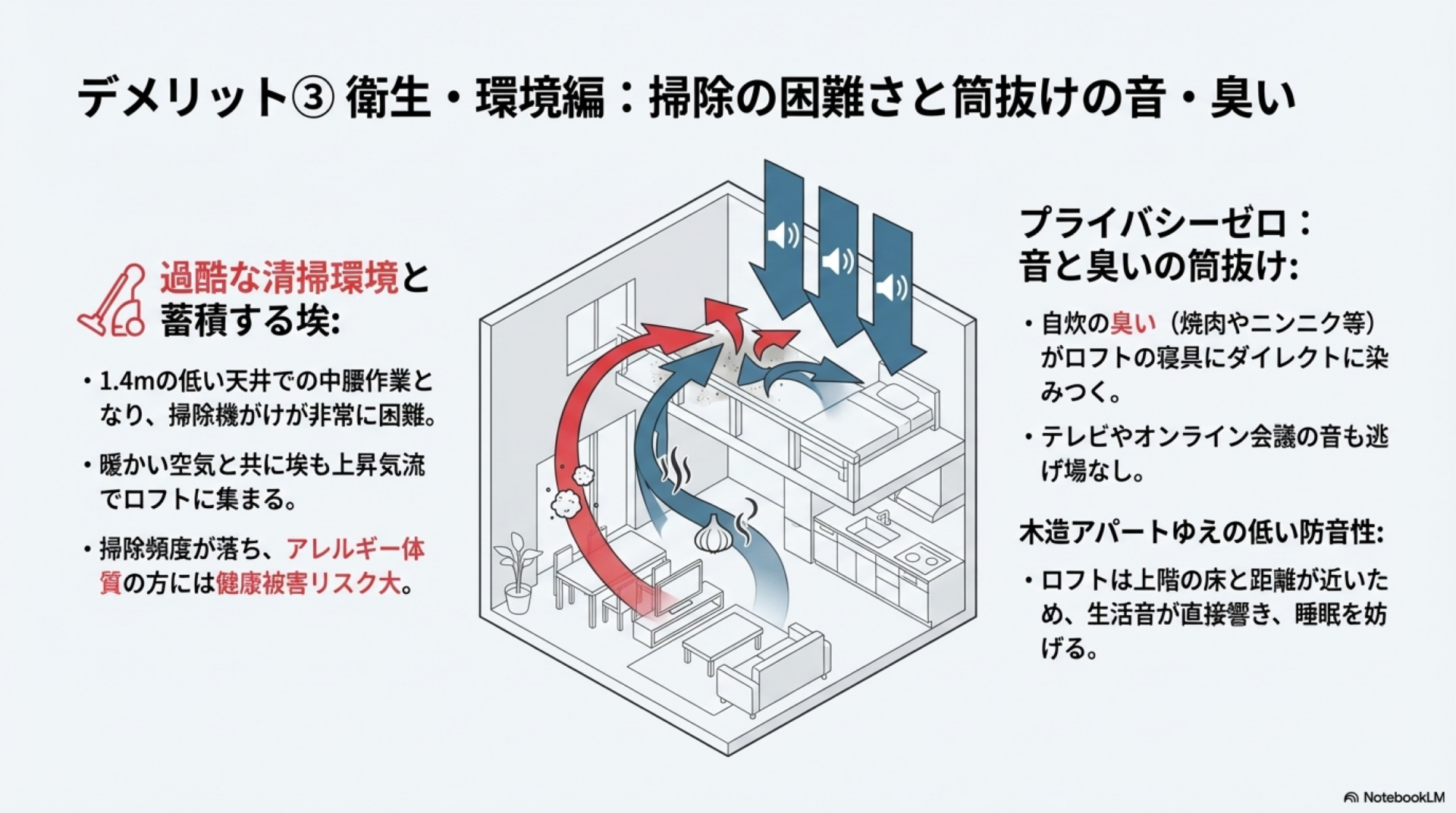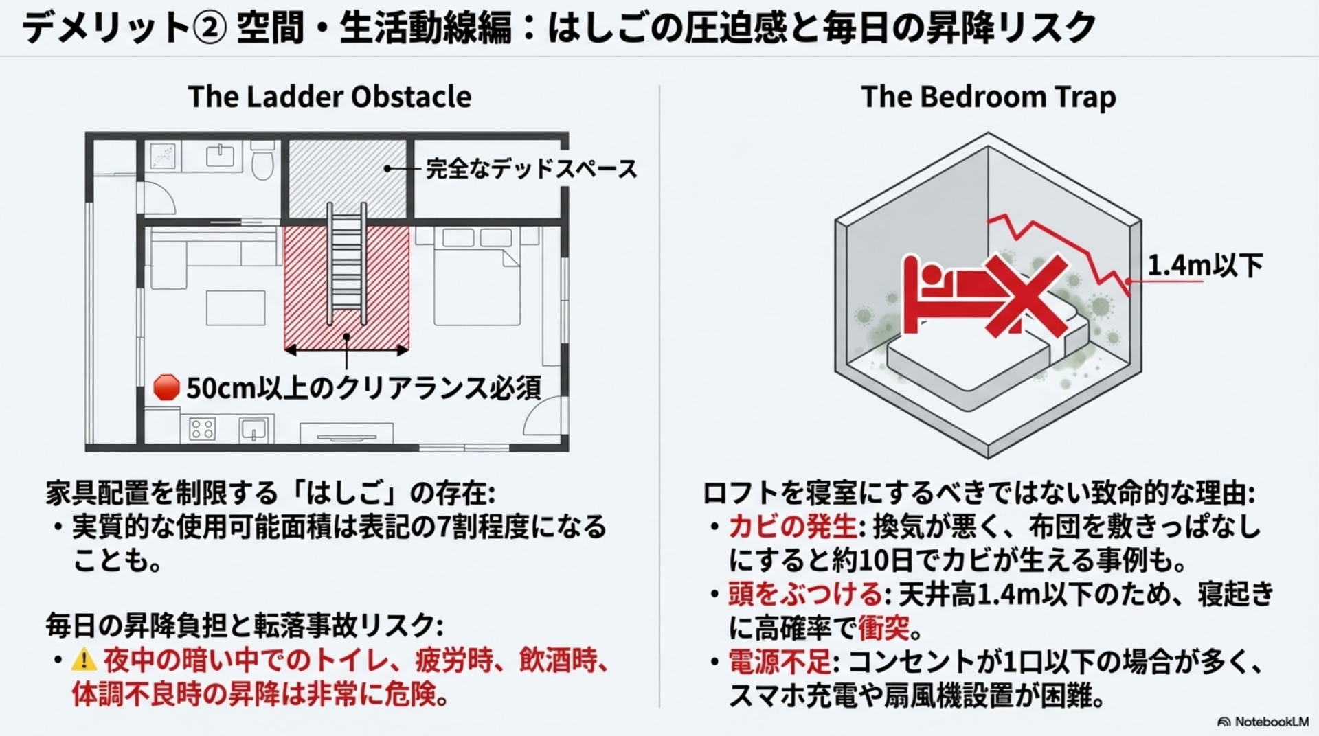 🛏️ ロフトで寝る主なデメリット: