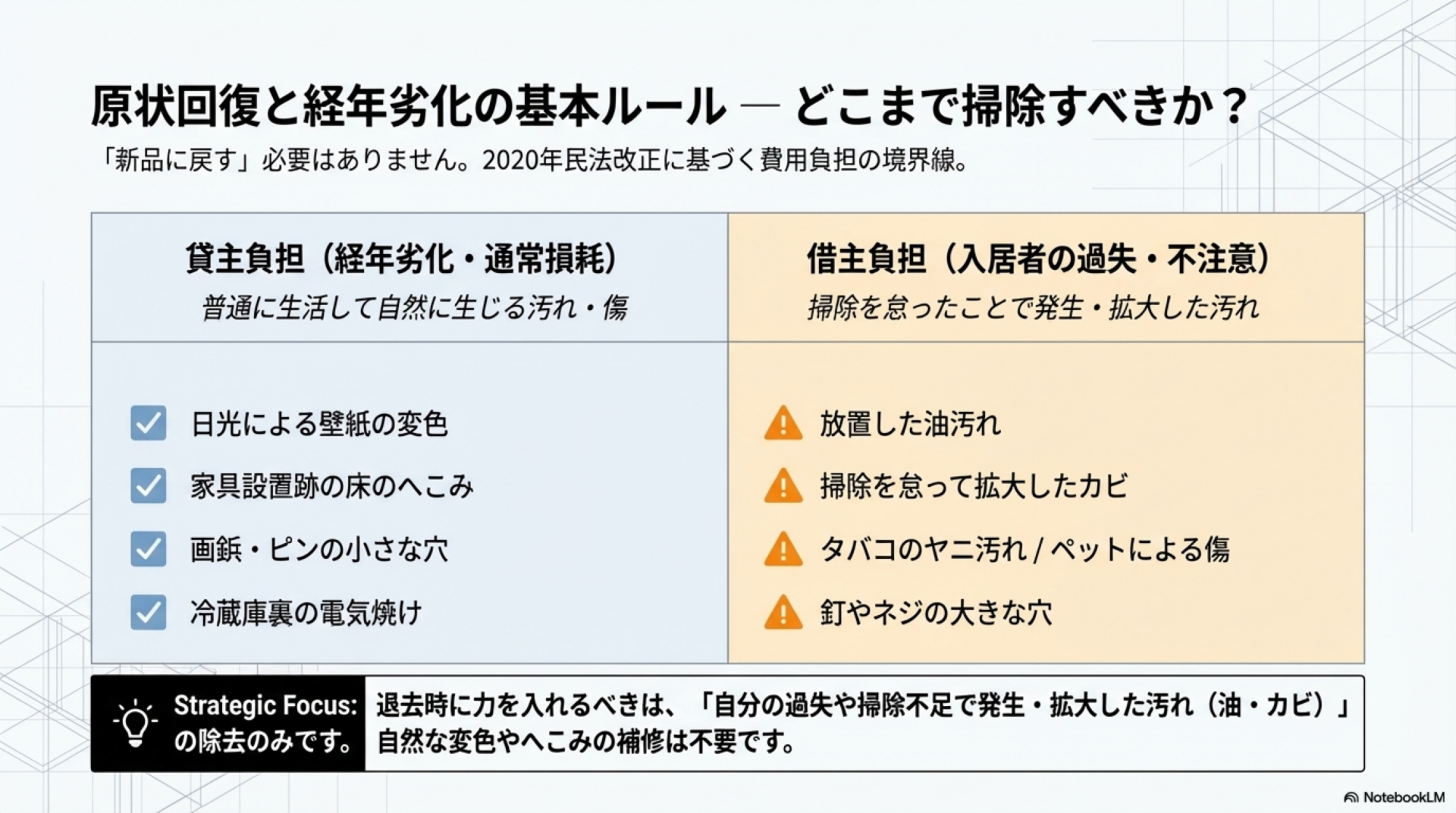 原状回復と経年劣化の基本ルール ─ 掃除が必要な箇所・不要な箇所の判断基準