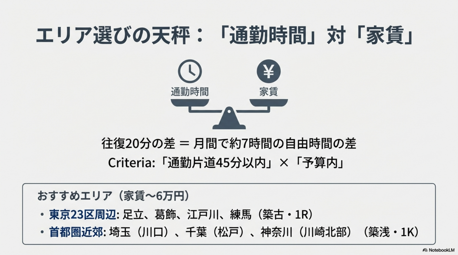 特に注目すべきは、同じ家賃でも地域によって得られる住環境の差です。例えば、東京で6.5万円の物件と地方都市で同額の物件では、後者の方が広さや設備面で優れていることが多いです。