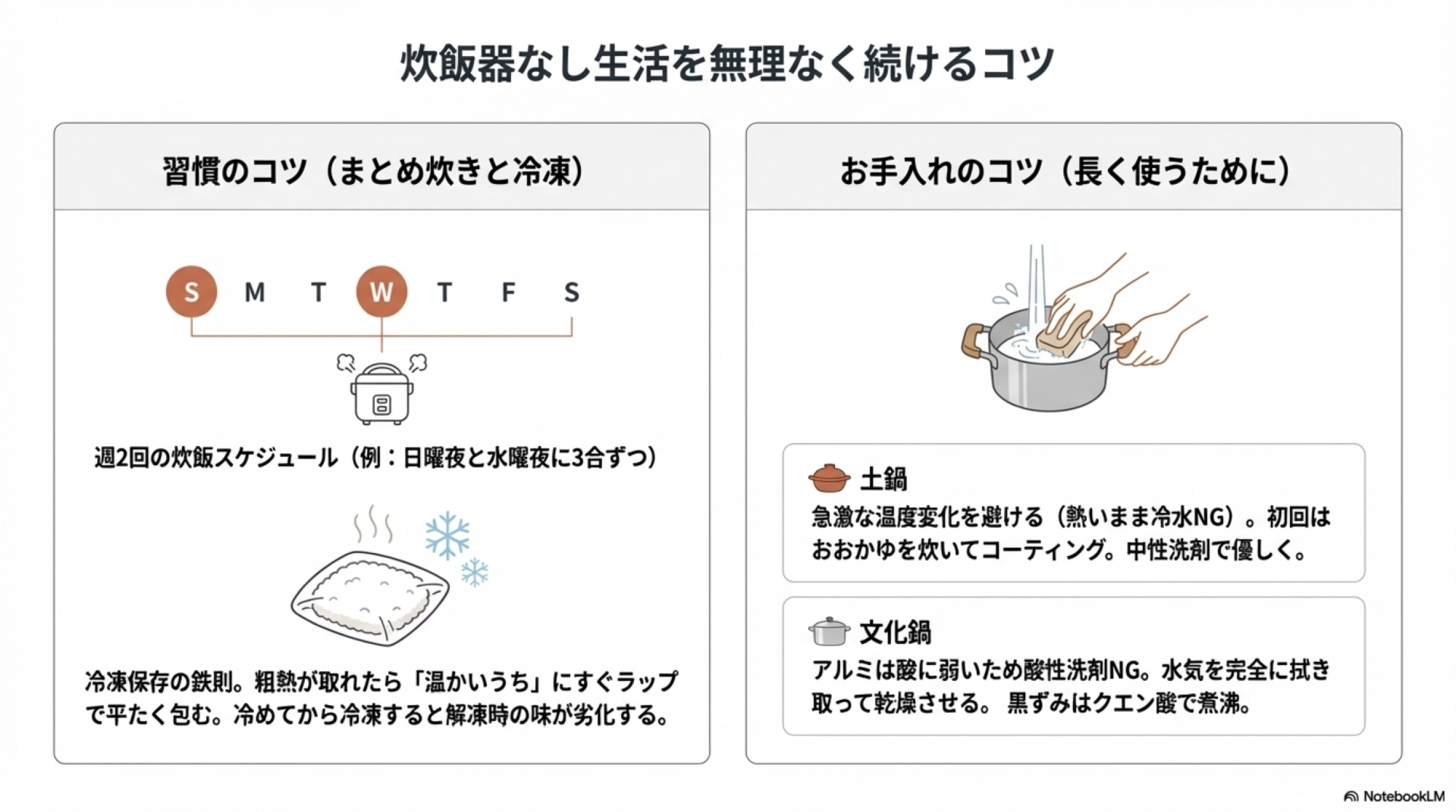 炊飯器なし生活を続けるコツ|まとめ炊き・冷凍保存・お手入れ