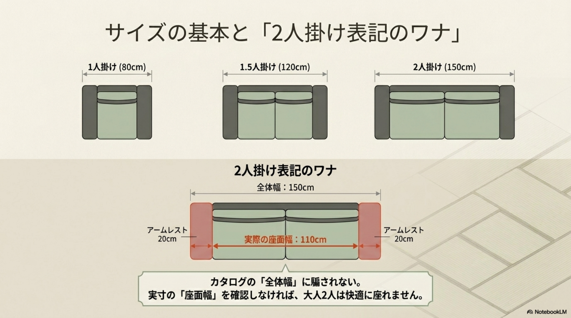 「2人掛け」表記のワナ|カタログ表記より実寸を優先する理由