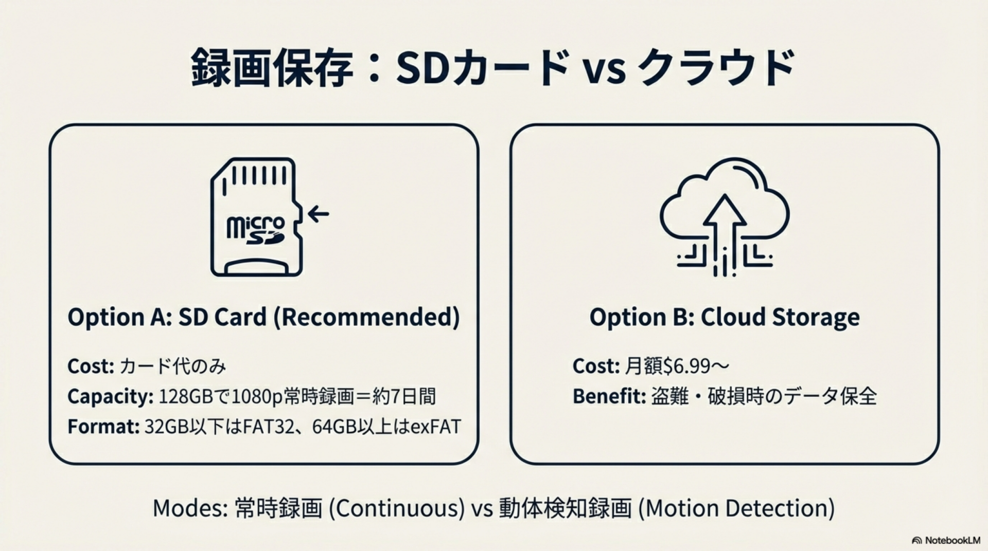- SDカード録画・クラウド録画
