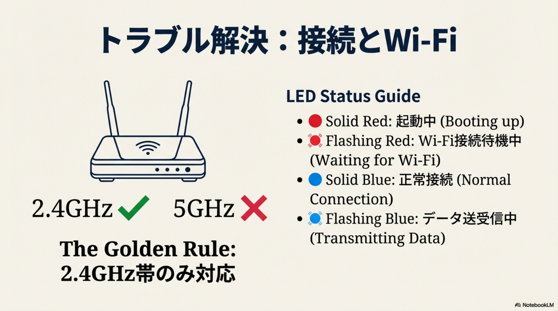 - Wi-Fiが2.4GHz帯であること